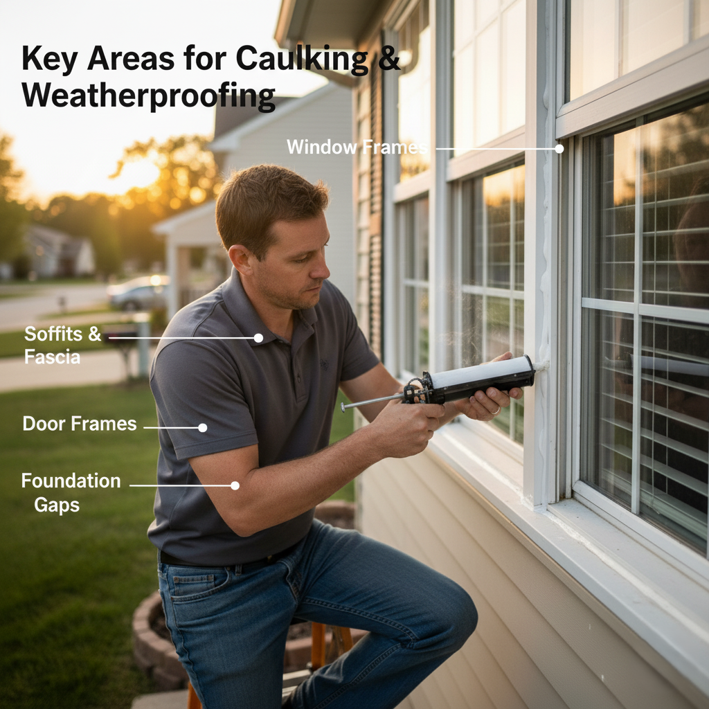 Exterior caulking helps protect your home from moisture intrusion and insect entry, especially during rainy or humid months.